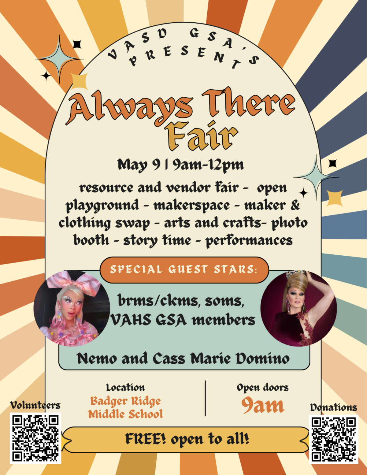 If anyone has supplies for our big day, here’s the link for donations (they do not have to be new), and here is the link if you wish to volunteer. We’re hoping to have between 40-60 volunteers total to help everyone feel welcome, safe and have fun. This event is free and open to local middle and high school students and their families and ALL are welcome.